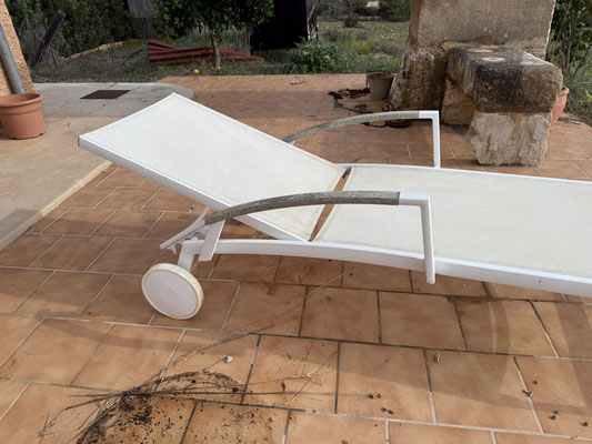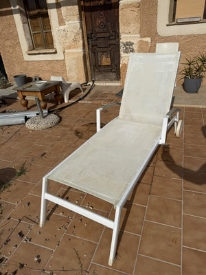 Used sun loungers with aluminium frame, adjustable backrest, robust synthetic fabric, mobile on 2 castors, available for collection